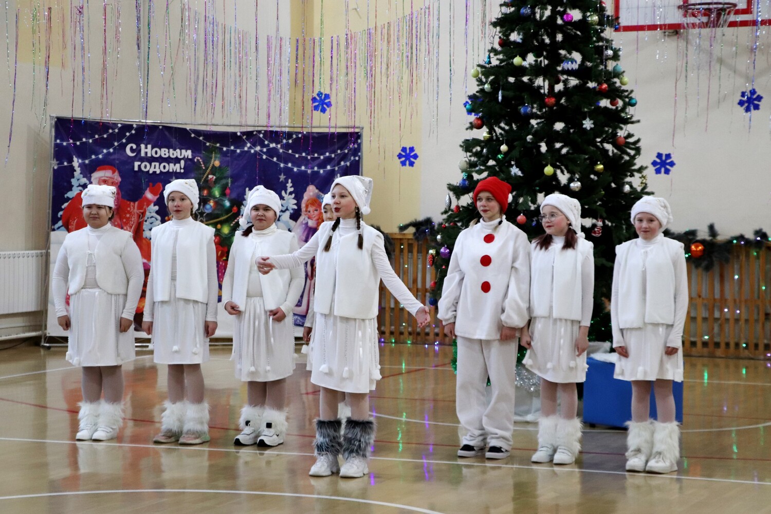 26 декабря в начальной школе состоялось долгожданное новогоднее представление. Для детей Новый год – это время волшебства и сказок. В этот период они с нетерпением ждут прихода Деда Мороза, Снегурочки и, конечно, подарков. На празднике ребята с радостью встретили своих любимых героев: Деда Мороза, Снегурочку, Бабу-Ягу, символ наступающего года Лошадку и других персонажей из сказок. Все зрители с замиранием сердца наблюдали за тем, как Морозко и Снегурочка сражаются с нечистой силой. Новогодний праздник – это время надежд на лучшее в будущем году и исполнения желаний. Зал превратился в настоящий театр, где развернулось яркое представление. Учащиеся проявили свои актёрские таланты. Песни и танцы сменяли друг друга, создавая атмосферу праздника. Новый год удался на славу. Мероприятие было волшебным и позитивным. Зрители ушли домой с хорошим настроением и ощущением предновогоднего чуда.